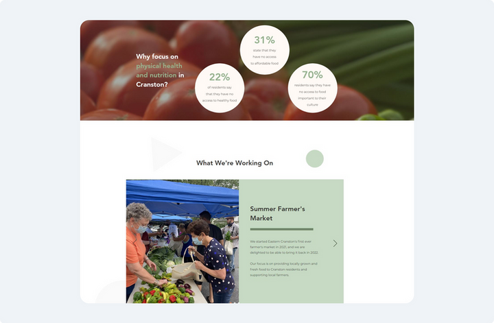 The original OneCranston Health Equity Zone (OCHEZ) website, created by a third-party web developer, had many dead links. Our team had difficulty making edits or updates to it. Additionally, the incomplete website looked unprofessional and untrustworthy to visitors, which was not ideal for the organization.